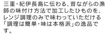 - レンジ料亭 かます開き:かます(三重県産)、赤穂天日塩